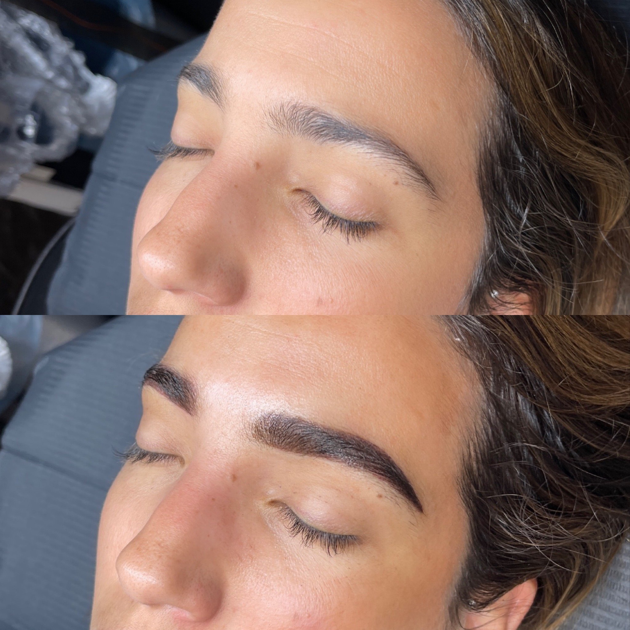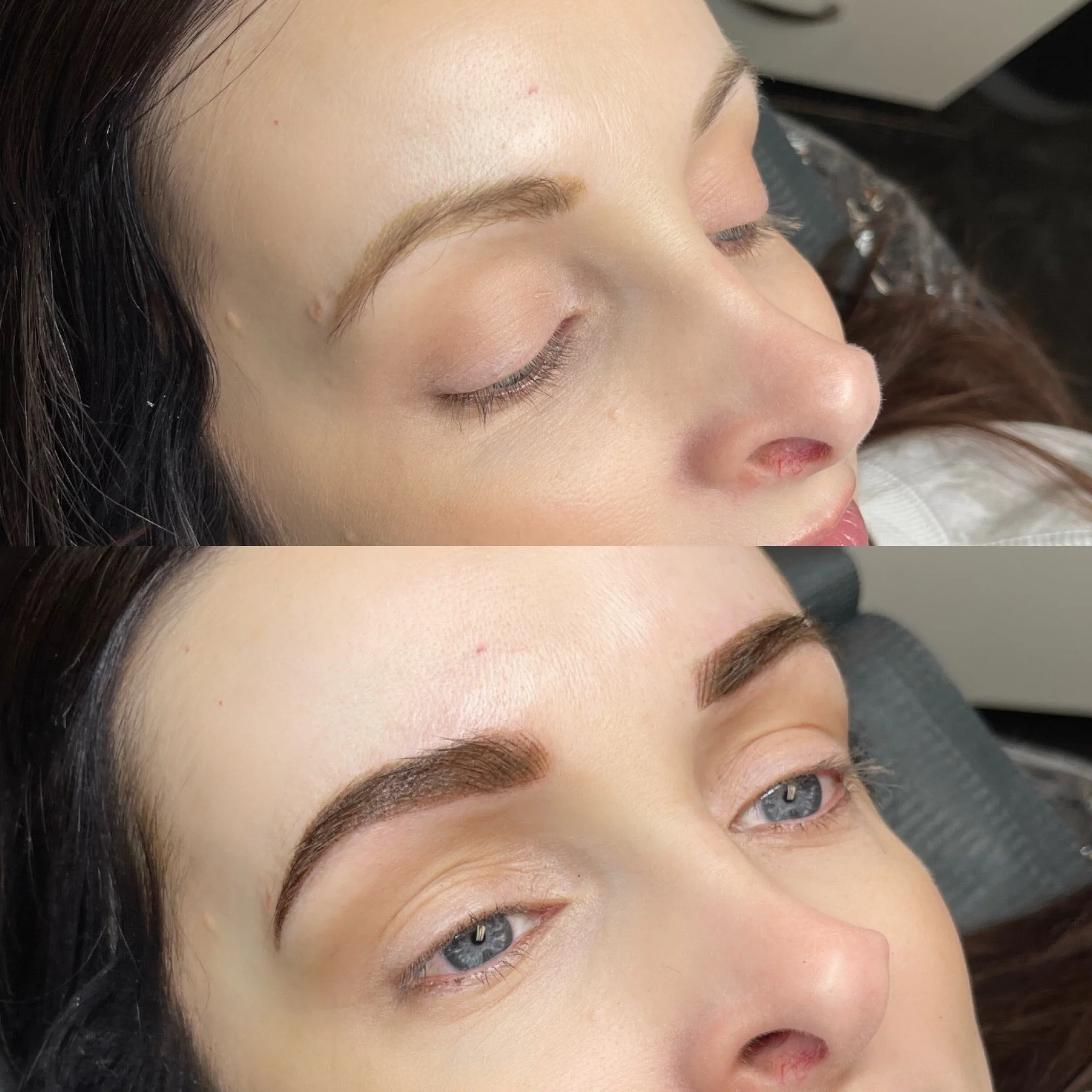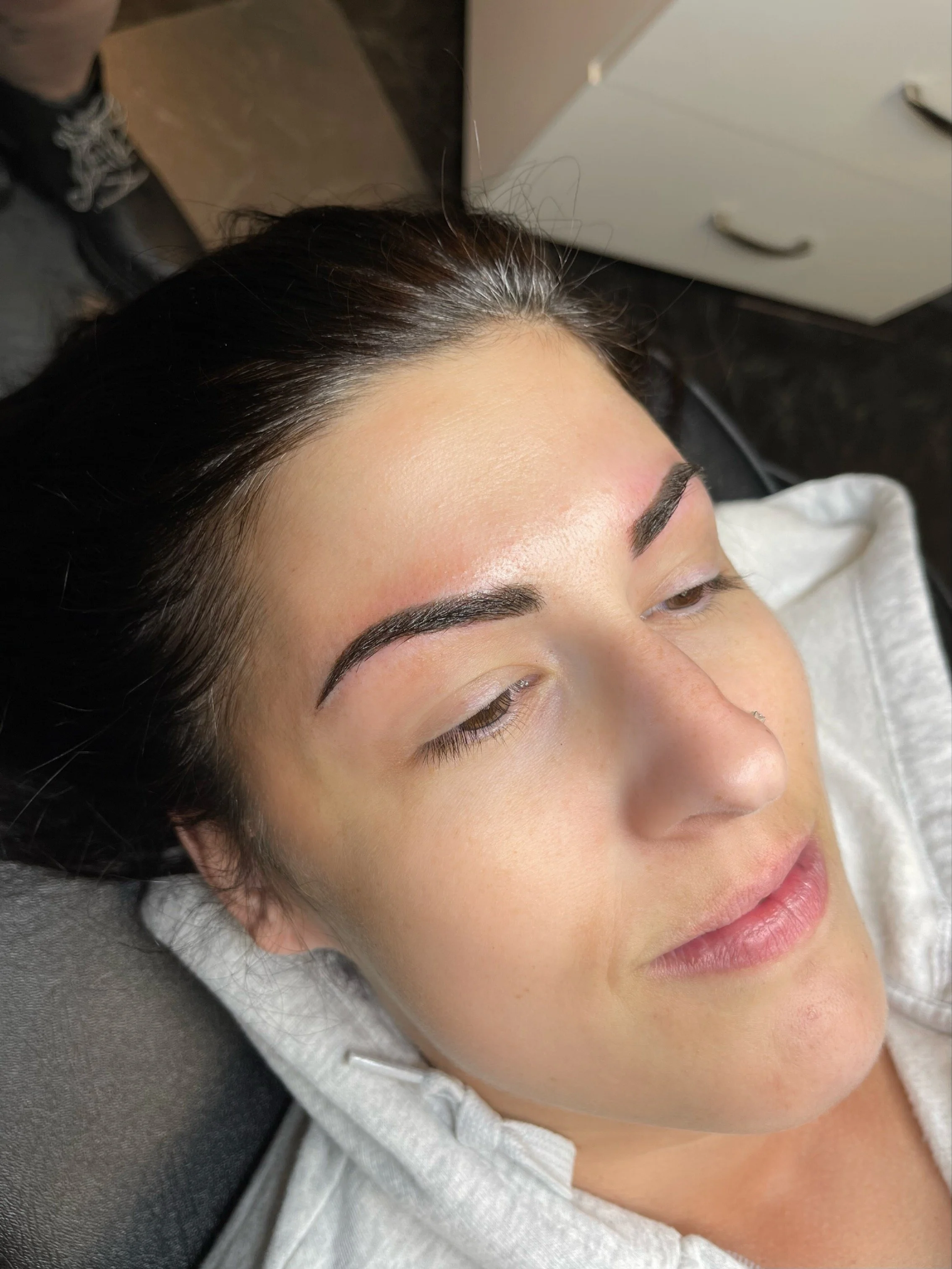 A soft, shaded permanent makeup brow technique that mimics the look of makeup for a fuller, defined finish. The result heals into a natural powdery effect that frames the face beautifully and lasts for years with minimal touch ups. Lasts up to 3 years.