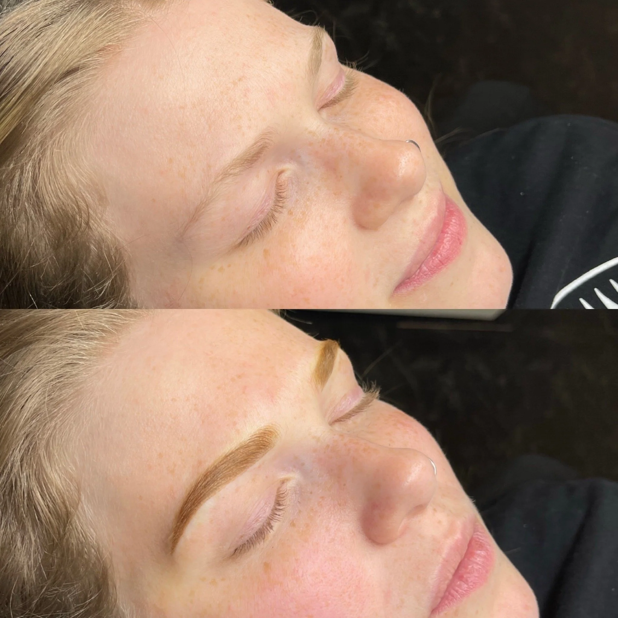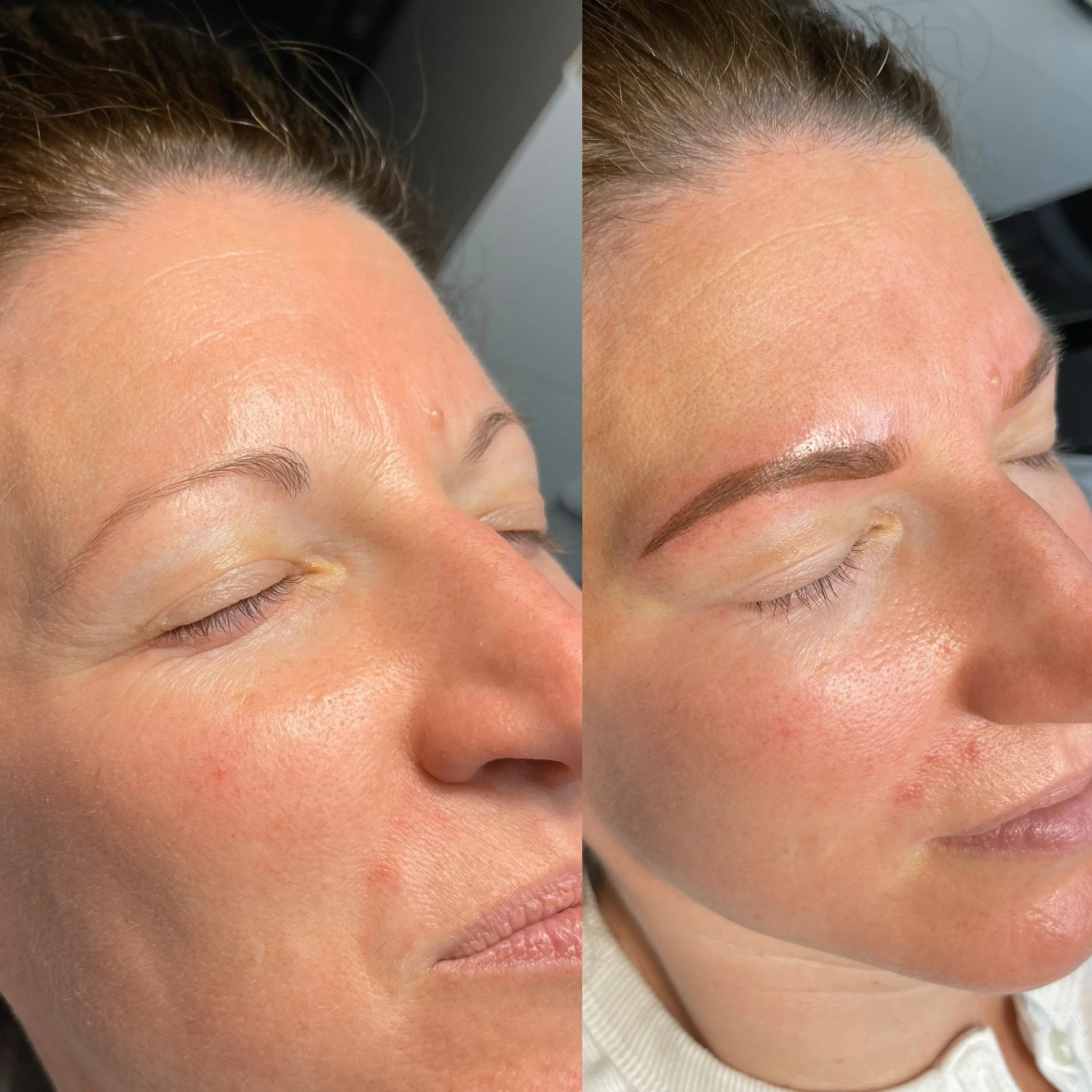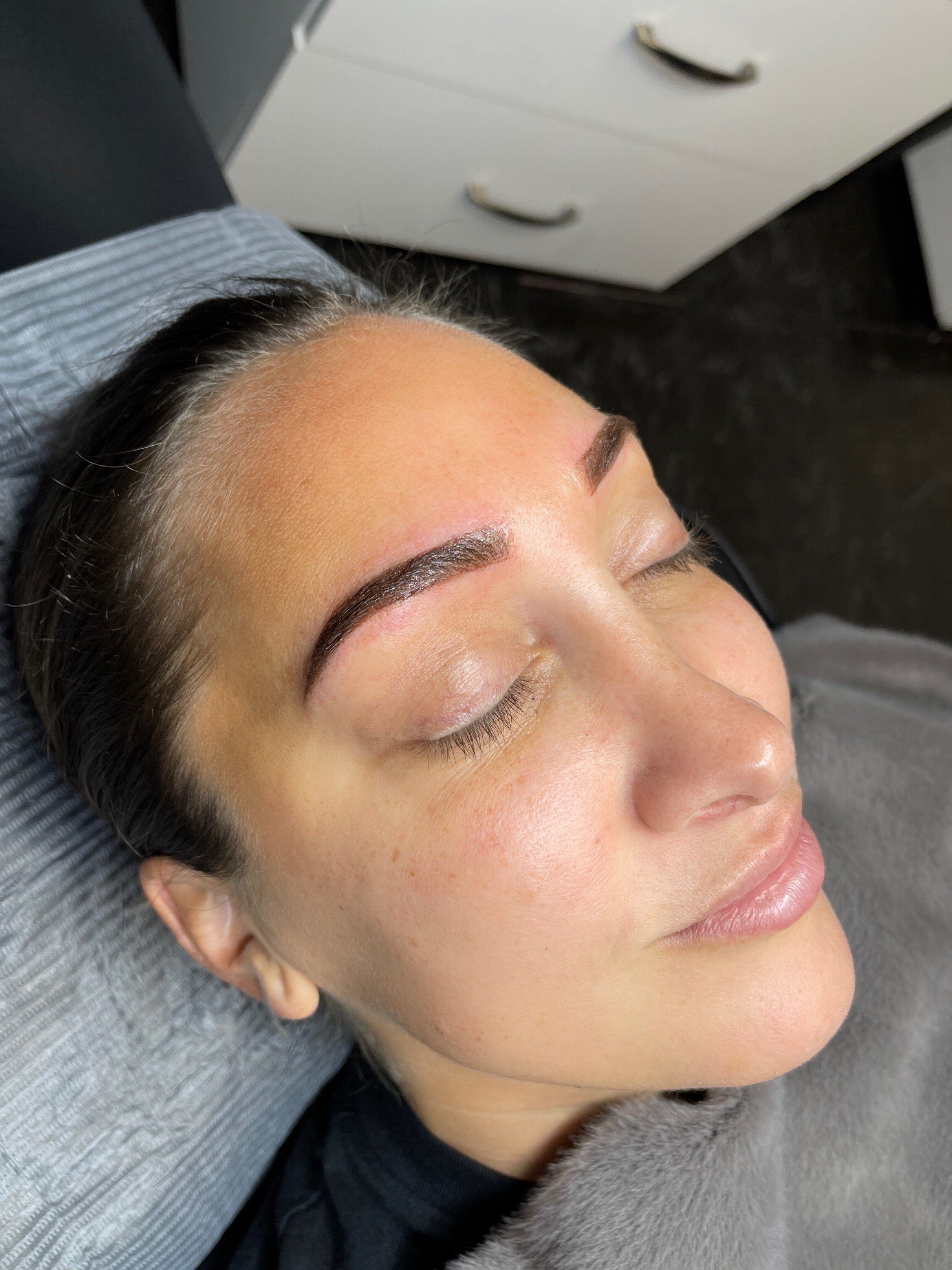 A soft, shaded permanent makeup brow technique that mimics the look of makeup for a fuller, defined finish. The result heals into a natural powdery effect that frames the face beautifully and lasts for years with minimal touch ups. Lasts up to 3 years.