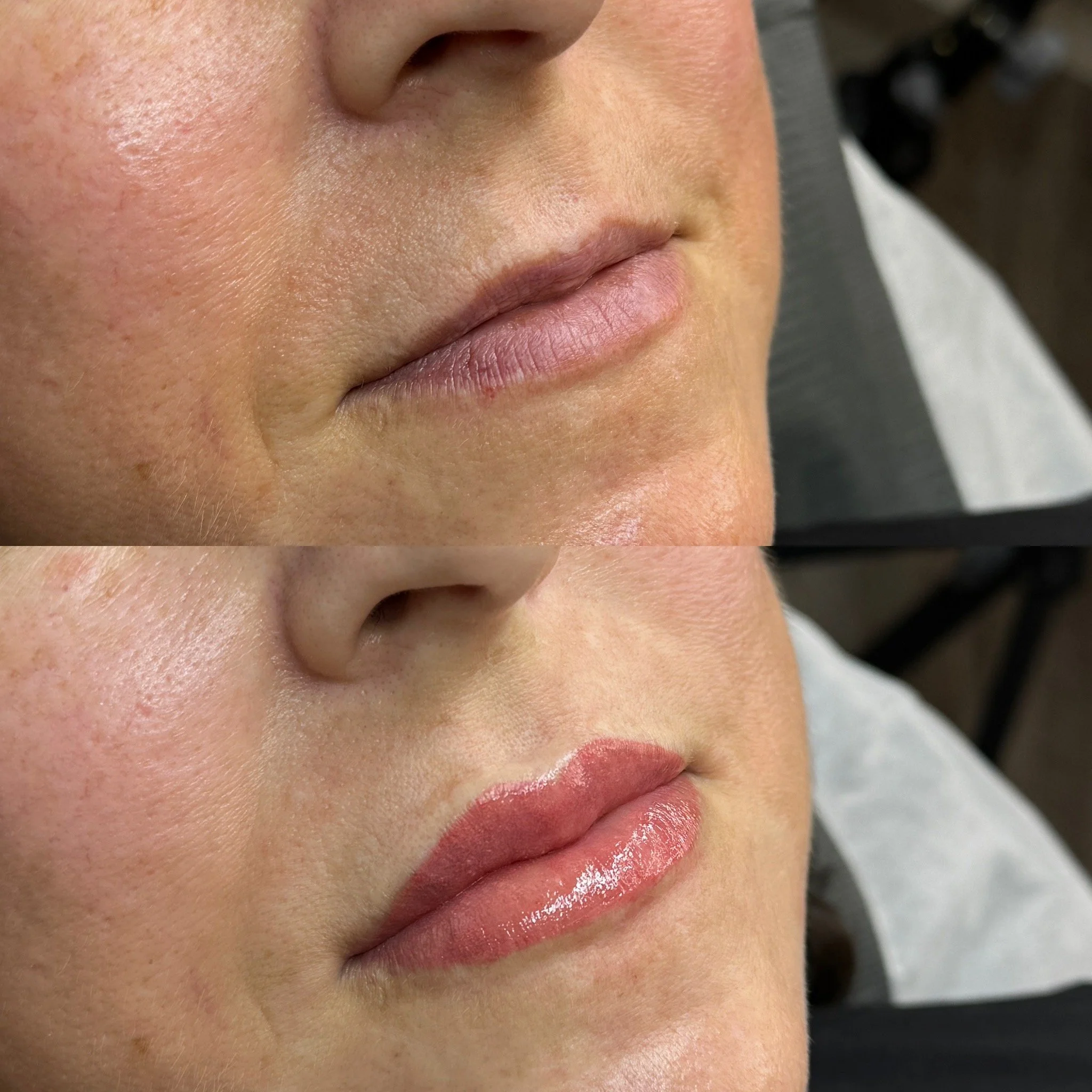 This technique is designed to enhance the natural color and shape of your lips. Lip Blush restores youthful definition, corrects asymmetry, adds a soft tint of pigment, and creates the look of fuller, more vibrant lips while maintaining a natural appearance. Lasts up to 3 years.